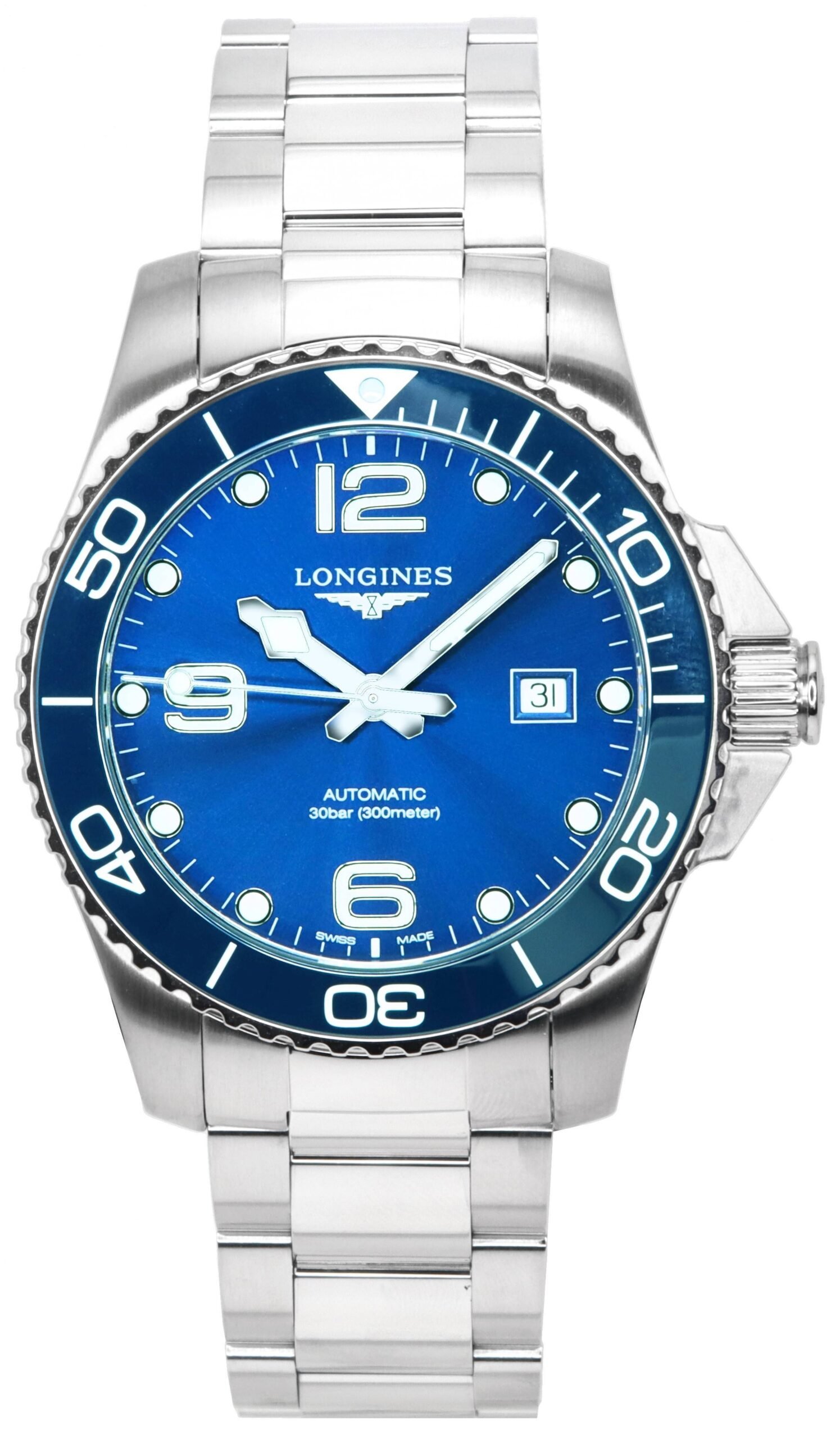 Features: Stainless Steel Case Stainless Steel Bracelet Automatic Movement Caliber: L888 Scratch Resistant Sapphire Crystal With Several Layers Of Anti Reflective Coating On Both Sides Sunray Blue Super-LumiNova Dial Analog Display Power Reserve Upto 72 Hours Luminous Hands And Markers Date Display Uni Directional Rotating Ceramic Bezel Screw Down Crown Screwed Case Back Deployment Clasp 300m Water Resistance Approximate Case Diameter: 43mm Approximate Case Thickness: 11.9mm Approximate Lug Width : 21mm
