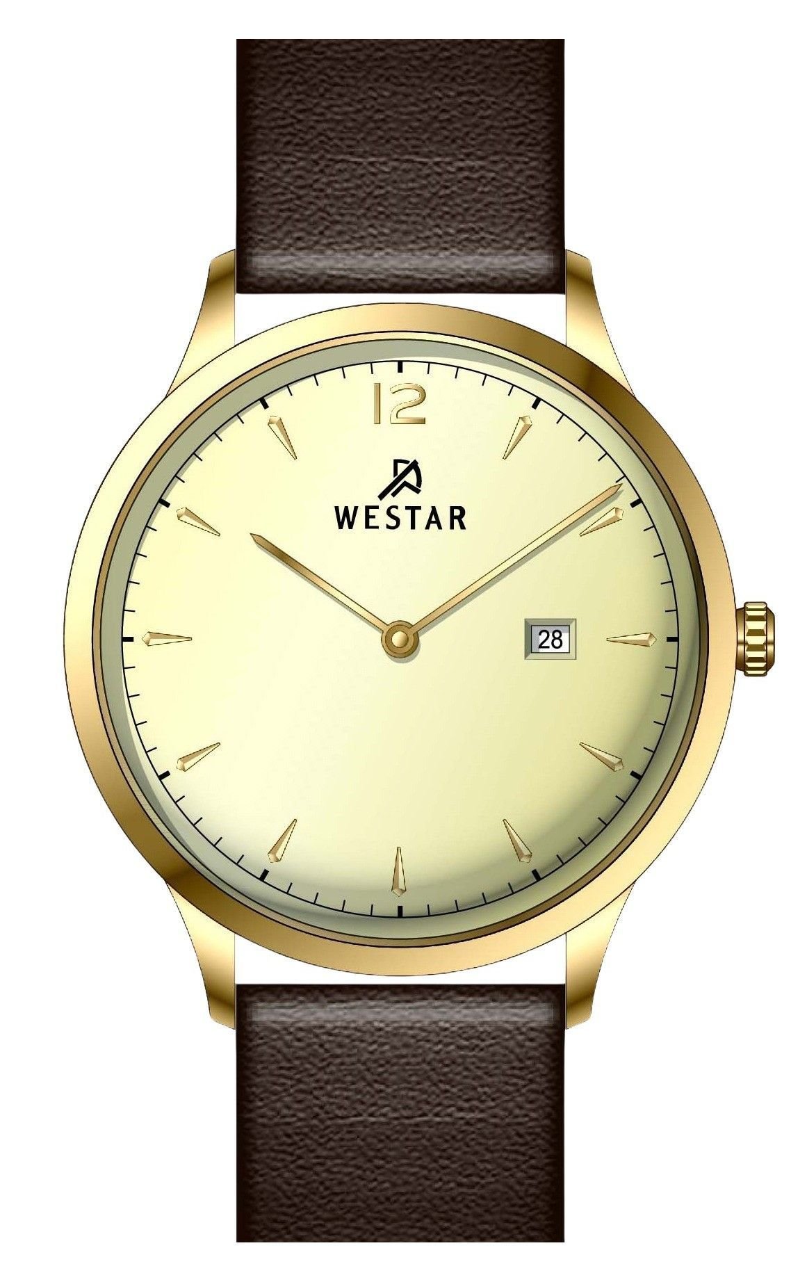 Westar Profile Leather Strap Light Champagne Dial Quartz 50217GPN122 Men’s Watch